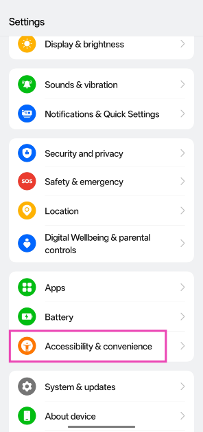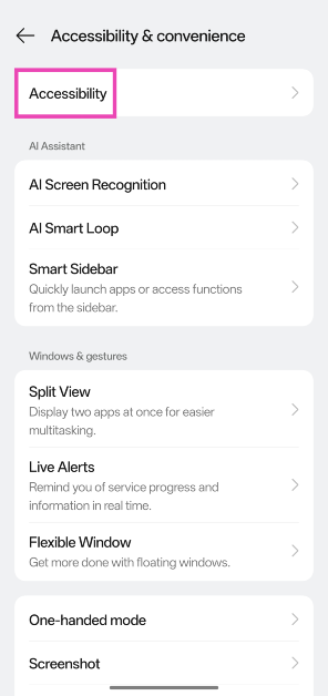 Βήμα 1:ΠηγαίνωΡυθμίσειςκαι πατήστεΠροσβασιμότητα και ευκολία.