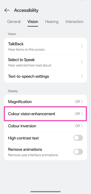 Προσαρμόστε το εργαλείο τύφλωσης χρώματος στο Android 15