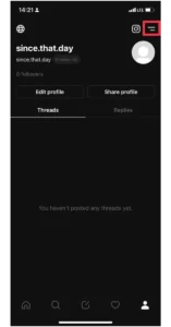 Βήμα 1: Για να απενεργοποιήσετε τον λογαριασμό σας σε νήματα,Μεταβείτε στη σελίδα του προφίλ σαςκαιΠατήστε στο μενού διπλής επένδυσης.