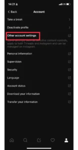 Βήμα 2: Μεταβείτε στοΤμήμα λογαριασμώνκαι επιλέξτεΆλλες ρυθμίσεις λογαριασμού. Αυτή η ενέργεια θα σας μεταφέρει στο λογαριασμό Instagram.