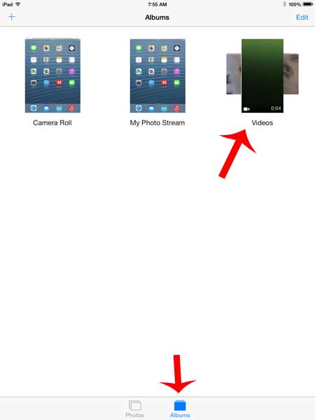 Βήμα 2: Αγγίξτε τοΑλμπουμεικονίδιο στο κάτω μέρος της οθόνης και, στη συνέχεια, επιλέξτε τοΒίντεοεπιλογή.