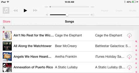 Αυτά τα τραγούδια δεν παίρνουν χώρο στο iPad σας και δεν μπορούν να διαγραφούν. Τα μόνα τραγούδια που μπορείτε να διαγράψετε είναι αυτά που δεν έχουν το εικονίδιο σύννεφο στα δεξιά τους.