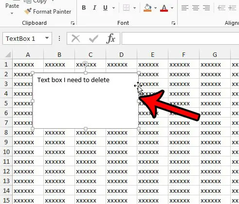 Τα βήματα σε αυτό το άρθρο πραγματοποιήθηκαν στο Microsoft Excel 2013, αλλά θα λειτουργήσουν επίσης στο Excel 2010 και στο Excel 2016. Το αποτέλεσμα της ολοκλήρωσης αυτών των βημάτων είναι ότι ένα πλαίσιο κειμένου που είχε προηγουμένως βρισκόταν στο υπολογιστικό φύλλο σας θα φύγει εντελώς εντελώς.