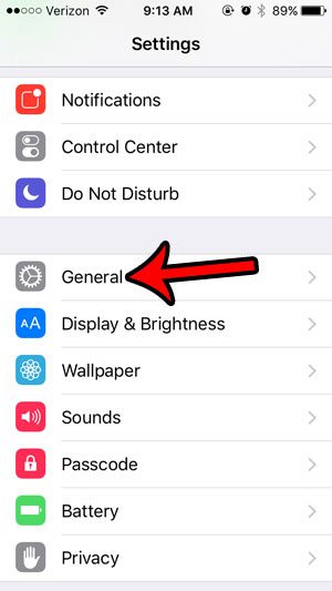 Ανοίξτε το μενού Ρυθμίσεις iOSΒήμα 2: Μετακινηθείτε προς τα κάτω και πατήστε τοΓενικόςεπιλογή.