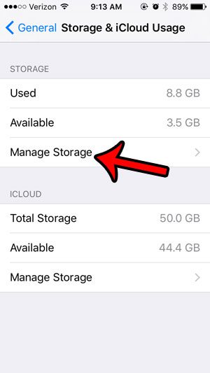 Πατήστε Διαχείριση αποθήκευσης στην ενότητα αποθήκευσηςΒήμα 5: Επιλέξτε την εφαρμογή που θέλετε να απεγκαταστήσετε από το iPhone σας.