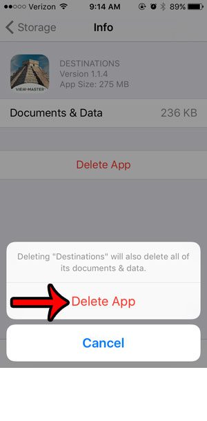 Αγγίξτε ξανά το κουμπί διαγραφής εφαρμογήςΑφαίρεση μιας εφαρμογής από το iPhone 5 μέσω ρυθμίσεων στο iOS 9