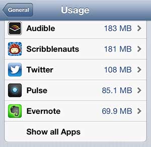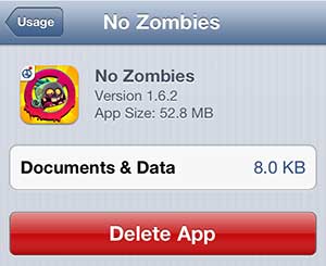 Πατήστε το κουμπί ΔιαγραφήΗ άλλη επιλογή για τη διαγραφή των εφαρμογών iPhone 5 μπορείτε να βρείτε από το μενού Ρυθμίσεις. Παρόλο που μπορεί να είναι ταχύτερη για τη διαγραφή εφαρμογών iPhone 5 από την αρχική οθόνη, αυτή η επιλογή θα σας παράσχει πρόσθετες πληροφορίες σχετικά με την εφαρμογή που μπορεί να διευκολύνει την επιλογή μεταξύ εφαρμογών, εάν δεν είστε σίγουροι σχετικά με ποιες θα διαγράψετε.