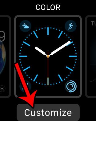 Εάν θέλετε να αφαιρέσετε μια επιπλοκή από ένα πρόσωπο ρολογιού, αλλά δεν θέλετε να διαγράψετε εξ ολοκλήρου την επιπλοκή, τότε μπορείτε να το κάνετε, πατώντας και κρατώντας το πρόσωπο του ρολογιού στο Apple Watch σας, τότε πατώντας τοΠροσαρμόζωκουμπί κάτω από αυτό.