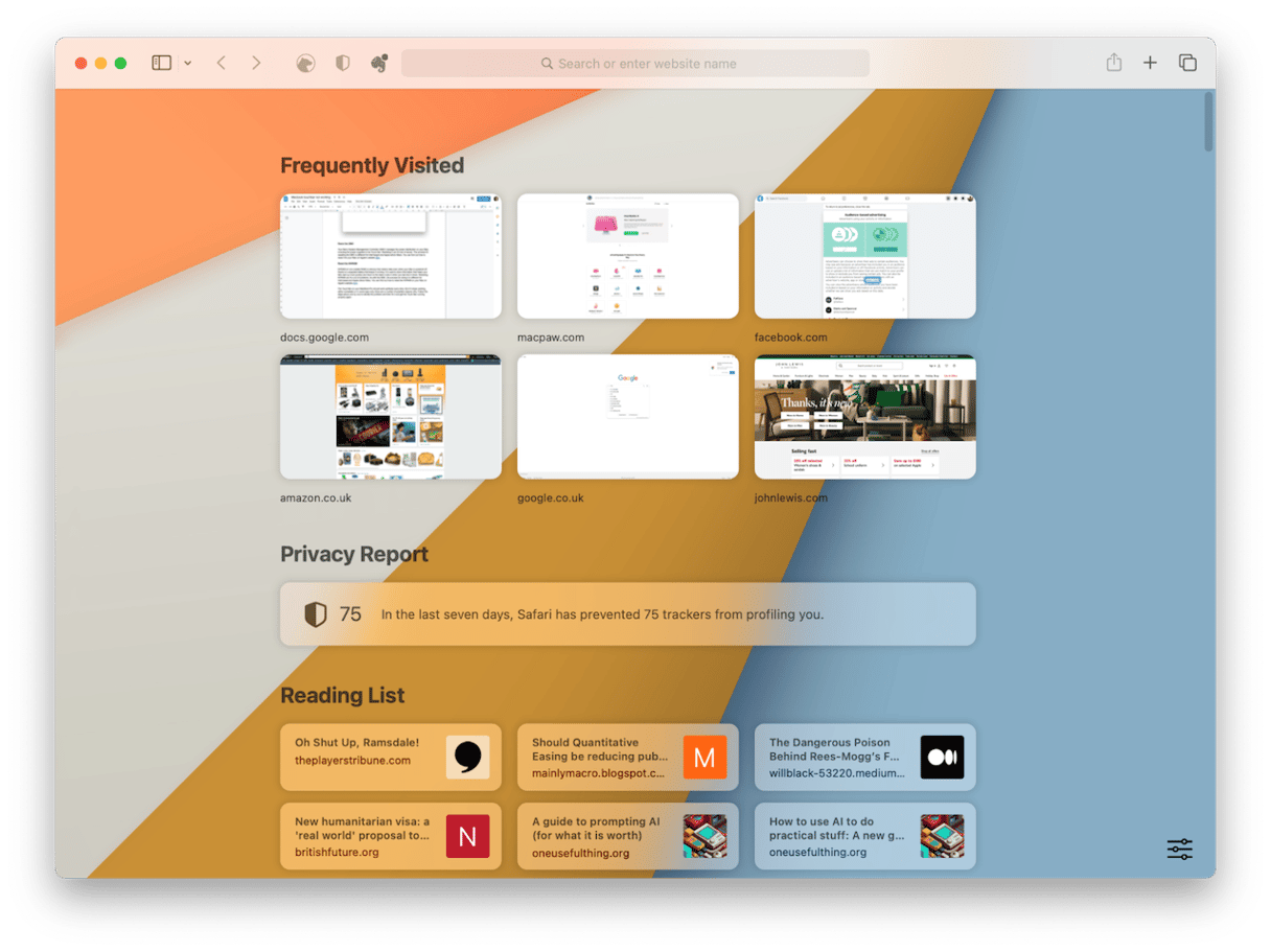 Όταν ανοίγετε μια νέα καρτέλα στο Safari, εκτός αν έχετε καθορίσει μια αρχική σελίδα, θα δείτε την προεπιλεγμένη σελίδα, η οποία περιλαμβάνει τα αγαπημένα και την ενότητα που εμφανίζεται συχνά εμφανίζοντας τις σελίδες που έχετε επισκεφθεί συχνά.