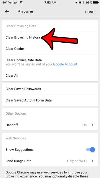 Τα βήματα σε αυτό το άρθρο πραγματοποιήθηκαν σε ένα iPhone 6, στο iOS 9. Σημειώστε ότι η διαγραφή του ιστορικού με αυτόν τον τρόπο δεν θα επηρεάσει την ιστορία σε άλλα προγράμματα περιήγησης, όπως το Safari. Εάν θέλετε επίσης να καθαρίσετε την ιστορία σας σαφάρι, τότε μπορείτε να διαβάσετε αυτό το άρθρο.