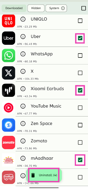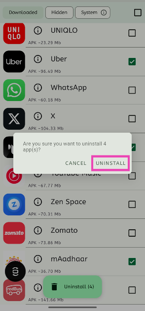 Η μέθοδος που αναφέρθηκε παραπάνω λειτουργεί μόνο για εφαρμογές που λήφθηκαν μέσω του Google Play Store. Εάν θέλετε να κατεβάσετε εφαρμογές διαγραφής μαζικής διαγραφής από πηγές τρίτων, χρησιμοποιήστε την εφαρμογή UNAPP.