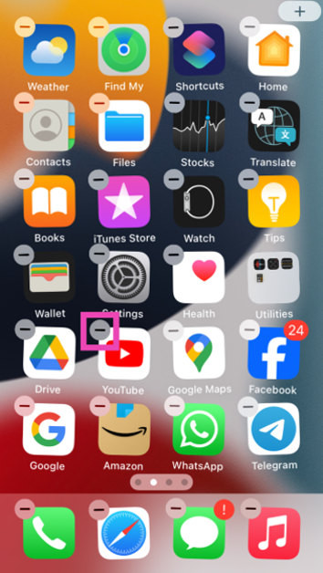 Βήμα 4:Οι εφαρμογές θα συνεχίσουν να κουνιέται στην οθόνη. Χτυπήστε τομείον εικονίδιοΣε άλλη εφαρμογή για να την καταργήσετε.