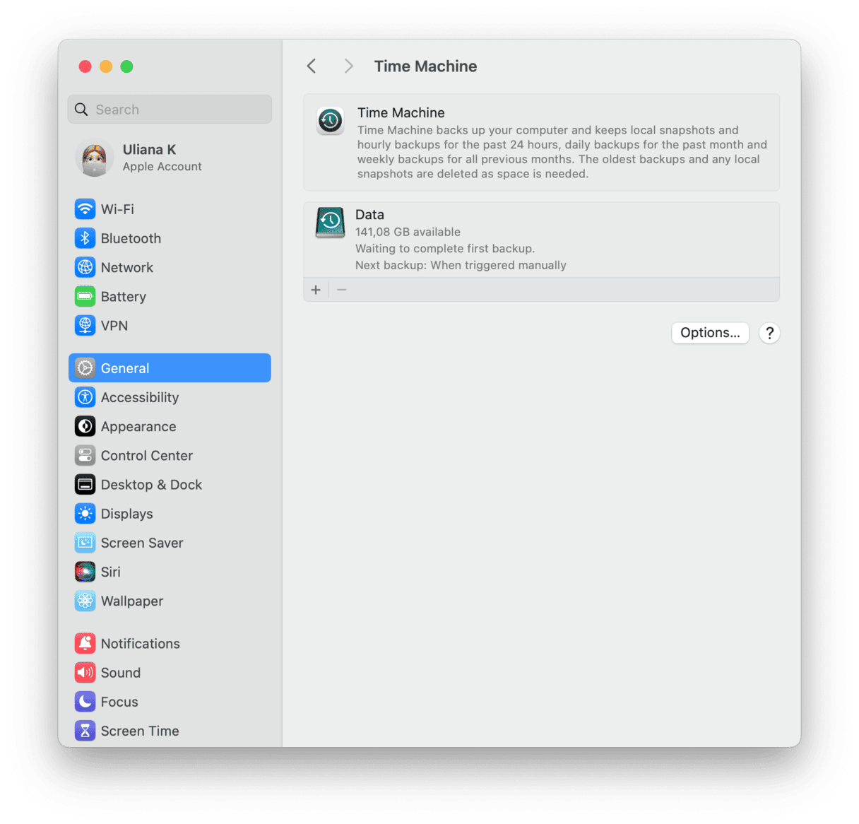 Από το κύριο μενού της Apple, μεταβείτε στις Ρυθμίσεις του Συστήματος> Γενικά> Μηχανή χρόνου.