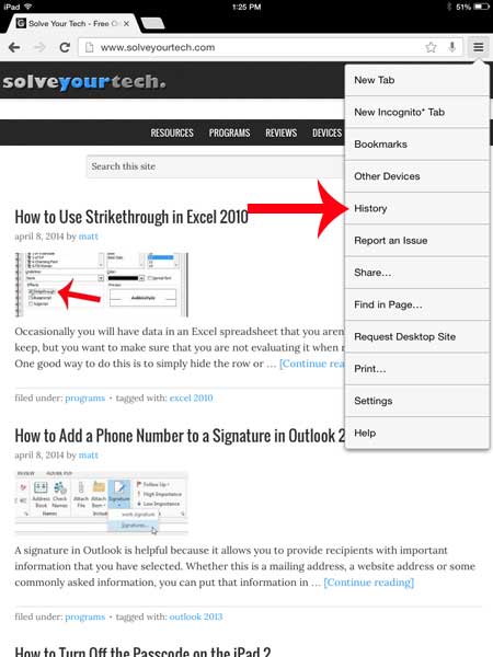 Ο οδηγός μας συνεχίζεται παρακάτω με πρόσθετες πληροφορίες σχετικά με τον τρόπο διαγραφής του ιστορικού σας στην εφαρμογή Chrome iPad, συμπεριλαμβανομένων εικόνων αυτών των βημάτων.