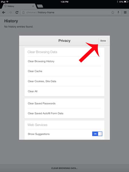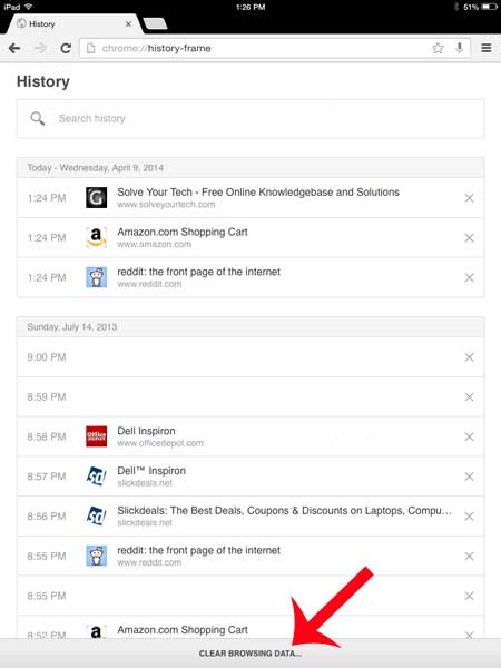 Σημειώστε ότι αυτό θα καθαρίσει μόνο το ιστορικό του προγράμματος περιήγησης για το Google Chrome. Εάν χρησιμοποιείτε άλλο πρόγραμμα περιήγησης στο iPad σας, όπως το Safari, τότε αυτή η μέθοδος δεν θα καθαρίσει το ιστορικό για αυτό το πρόγραμμα περιήγησης.