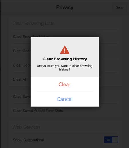 Βήμα 5: Αγγίξτε τοΚαθαρίστε το ιστορικό περιήγησηςκουμπί.