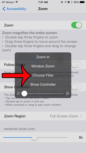 Βήμα 6: Χρησιμοποιήστε τρία δάχτυλα ταυτόχρονα για να αγγίξετε την οθόνη τρεις φορές στη σειρά και, στη συνέχεια, επιλέξτε τοΕπιλέξτε φίλτροεπιλογή.