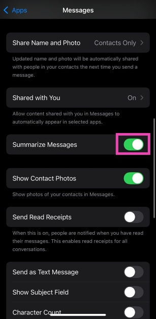 Βήμα 3:Απενεργοποιήστε το διακόπτη εναλλαγής δίπλα στοΣυνοψίστε μηνύματα.