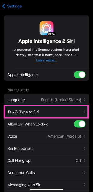 Βήμα 1:ΠηγαίνωΡυθμίσειςκαι επιλέξτεApple Intelligence και Siri.