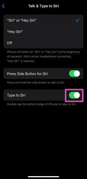 Βήμα 3:Απενεργοποιήστε το διακόπτη εναλλαγής δίπλα στοΤύπος για το Siri.