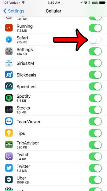 Ο οδηγός μας συνεχίζεται παρακάτω με πρόσθετες πληροφορίες σχετικά με τον τρόπο απενεργοποίησης της χρήσης κυτταρικών δεδομένων για μια μεμονωμένη εφαρμογή iPhone, συμπεριλαμβανομένων εικόνων αυτών των βημάτων.