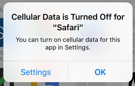 Έχω απενεργοποιήσει κυτταρικά δεδομένα για τοΣαφάριεφαρμογή στην παρακάτω εικόνα.