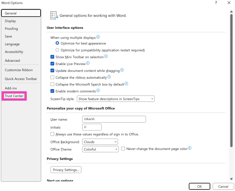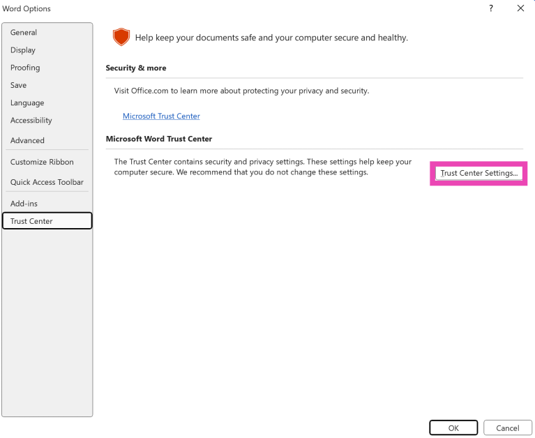 Βήμα 3:Κλικ στοΚέντρο εμπιστοσύνηςστην πλαϊνή μπάρα.