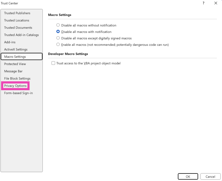 Βήμα 5:Κλικ στοΕπιλογές απορρήτουστην πλαϊνή μπάρα.
