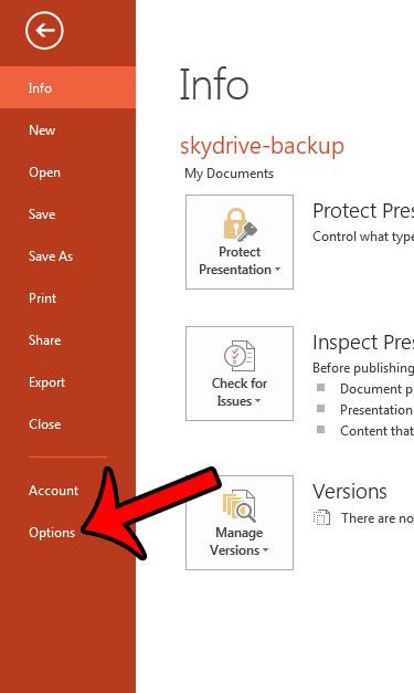Βήμα 3: Κάντε κλικ στοΕπιλογέςκουμπί στο κάτω μέρος της στήλης στην αριστερή πλευρά του παραθύρου.