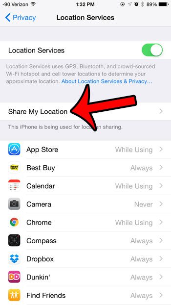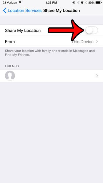 Αλλά αν έχετε αποφασίσει ότι δεν θέλετε πλέον να χρησιμοποιήσετεΜοιραστείτε την τοποθεσία μου, τότε πιθανότατα ψάχνετε για έναν τρόπο να το απενεργοποιήσετε. Το σεμινάριο μας παρακάτω θα σας δείξει πού να βρείτε αυτή τη ρύθμιση έτσι ώστε να μπορεί να απενεργοποιηθεί.