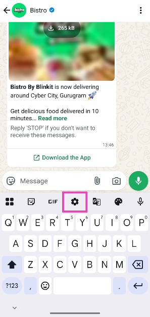 Βήμα 1:Πατήστε τοεικονίδιο ρυθμίσεωνΣτη γραμμή εργαλείων του πληκτρολογίου της Samsung. Εναλλακτικά, μεταβείτε στοΡυθμίσεις> Γενική διαχείριση>Ρυθμίσεις πληκτρολογίου Samsung.