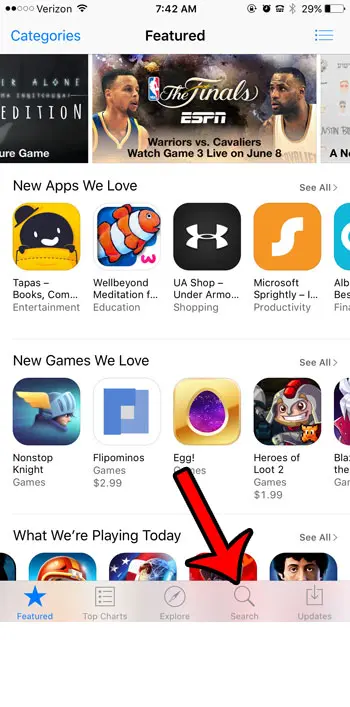 Το άρθρο μας συνεχίζεται παρακάτω με πρόσθετες πληροφορίες σχετικά με τη λήψη εφαρμογών σε ένα iPhone 6, συμπεριλαμβανομένων των εικόνων αυτών των βημάτων.