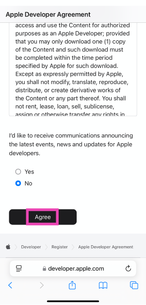 Βήμα 1: Εκτόξευσητο πρόγραμμα περιήγησης σαφάρι στο iPhone σας και μεταβείτεhttps://developer.apple.com/.
