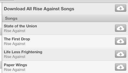 Υπάρχει επίσης μια επιλογή στην κορυφή της λίστας που σας επιτρέπει να κατεβάσετε όλα τα τραγούδια από τον καλλιτέχνη που έχετε αγοράσει.