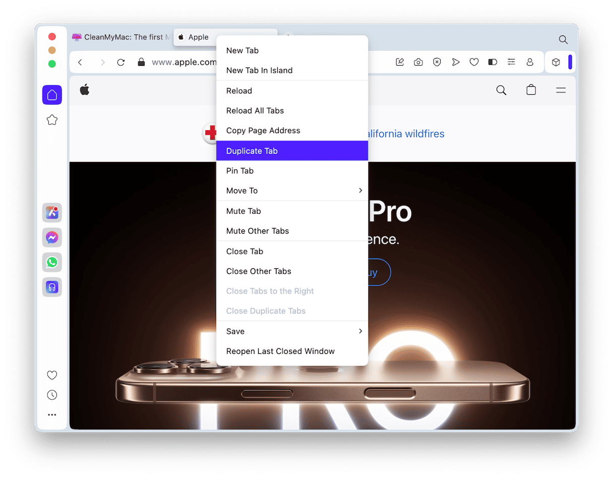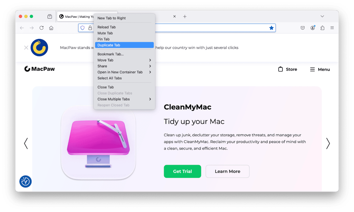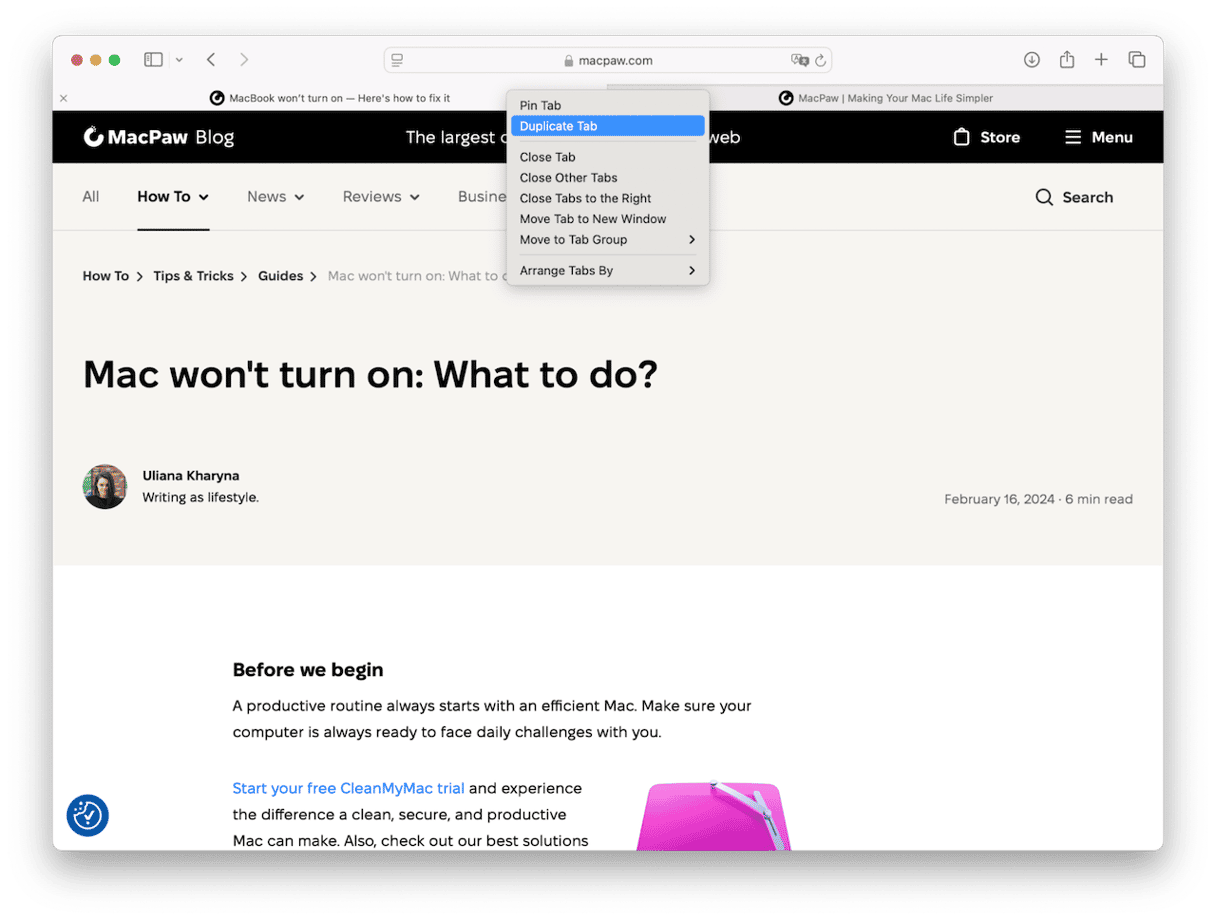- Κάντε κλικ στο μενού καρτέλας και επιλέξτε "Διπλότη καρτέλα".
