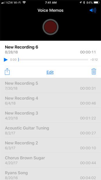 Στη συνέχεια, μπορείτε να επιλέξετε την εγγραφή και να παίξετε, να διαγράψετε, να επεξεργαστείτε ή να το μοιραστείτε.