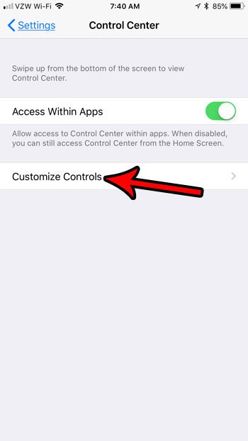 Βήμα 5: Συλλέξτε από το κάτω μέρος της οθόνης για να ανοίξετε το κέντρο ελέγχου.