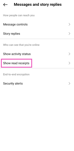 Ανοίξτε τη συνομιλία στο Instagram DMS, πατήστε το όνομα στο επάνω μέρος, επιλέξτε «Προστασία της ιδιωτικής ζωής και ασφάλεια» και απενεργοποιήστε το διακόπτη εναλλαγής για «ανάγνωση αποδείξεων».
