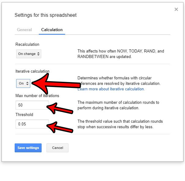 Αυτό οφείλεται στη ρύθμιση των φύλλων Google όπου ο επαναληπτικός υπολογισμός είναι απενεργοποιημένος από προεπιλογή.