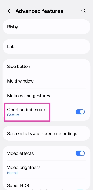 Εάν το μεγάλο μέγεθος της οθόνης του τηλεφώνου σας σας εμποδίζει να φτάσετε στις επάνω γωνίες με το ένα χέρι, πρέπει να ελέγξετε τη λειτουργία με το ένα χέρι. Αυτή η λειτουργία μπορεί να βρεθεί στις ρυθμίσεις της συσκευής. Στο απόθεμα Android (Google Pixel, Motorola κ.λπ.), αυτή η λειτουργία μπορεί να βρεθεί στις ρυθμίσεις χειρονομίας. Στα τηλέφωνα της Samsung, είναι κρυμμένο σε «προηγμένα χαρακτηριστικά». Οι χρήστες OnePlus μπορούν να το βρουν σε επιλογές "Προσβασιμότητα και ευκολία".