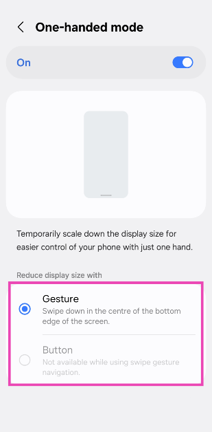 Βήμα 4:Επιλέξτε μία από τις ακόλουθες ενέργειες για να ενεργοποιήσετε τη λειτουργία με το ένα χέρι: