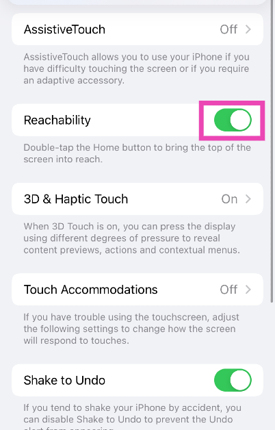Βήμα 4:Εάν το iPhone σας έχειΠροσώπου,κτύπημα κάτωΣτο κάτω άκρο της οθόνης για να μεταβείτε σε λειτουργία με το ένα χέρι. Εάν το iPhone σας έχειΑναγνωριστικό αφής, ελαφρώςδιπλάσιοςΤο κουμπί Home δύο φορές.