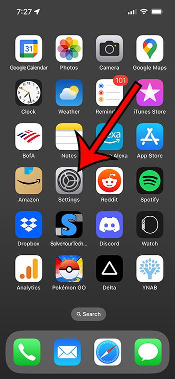 Βήμα 1: Βρείτε τοΡυθμίσειςΕφαρμογή στην αρχική οθόνη σας και πατήστε την για να ανοίξετε το μενού.