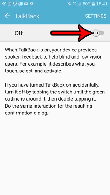 Βήμα 5: Πατήστε το κουμπί στα δεξιάΜακριά απόΓια να ενεργοποιήσετε τη λειτουργία Talkback.