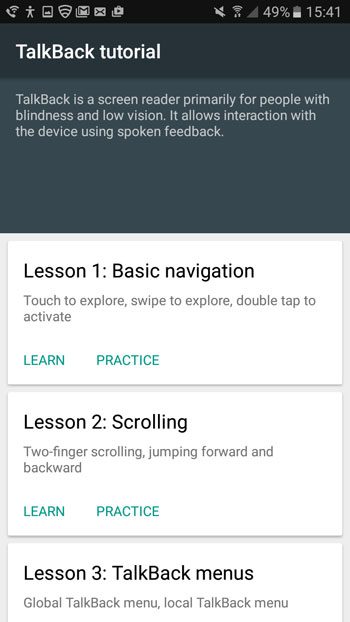 Ενώ αυτό δεν απαιτείται, είναι σίγουρα ευεργετικό, καθώς η χρήση του τηλεφώνου σας όταν το talkback είναι ενεργοποιημένο μπορεί να είναι απογοητευτικό αν δεν ξέρετε τι να κάνετε. Για παράδειγμα, θα χρειαστεί να χρησιμοποιήσετε δύο δάχτυλα για να μετακινηθείτε στην οθόνη. Αυτό είναι ιδιαίτερα σημαντικό όταν θέλετε να επιστρέψετε και να γυρίσετε το talkback, καθώς η επιλογή μενού είναι κάτω από το κάτω μέρος της οθόνης.
