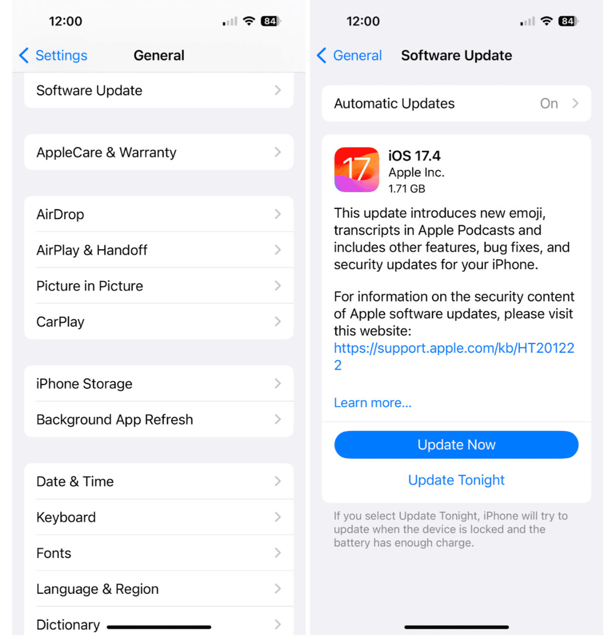 - Ενημερώστε το λογισμικό iPhone σας. Μεταβείτε στις Ρυθμίσεις> Γενικά> Ενημέρωση λογισμικού και επιλέξτε "Ενημέρωση τώρα".