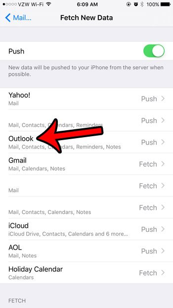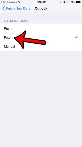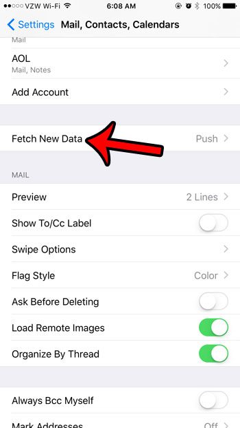 Το iPhone σας θα ελέγχει περιοδικά για νέα μηνύματα ηλεκτρονικού ταχυδρομείου καθ 'όλη τη διάρκεια της ημέρας, είτε χρησιμοποιώντας μια επιλογή που ονομάζεται Push, όπου τα μηνύματα ηλεκτρονικού ταχυδρομείου σας λαμβάνονται μόλις αποσταλούν στη διεύθυνσή σας είτε χρησιμοποιώντας μια επιλογή που ονομάζεται Fetch, όπου το iPhone σας θα ελέγξει για νέα μηνύματα σε συγκεκριμένο διάστημα.