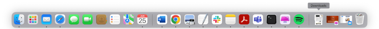 Αυτό συχνά παραβλέπεται, αλλά είναι πραγματικά ένας από τους πιο γρήγορους τρόπους που έχετε πρόσβαση στις λήψεις σας. Από προεπιλογή, το MACOS προσθέτει μια στοίβα λήψης στη δεξιά πλευρά της αποβάθρας. Είναι εύκολο να χάσετε εάν έχετε μετακινηθεί ή διαγράψετε. Απλά κάντε κλικ σε αυτό και τα τελευταία σας αρχεία εμφανίζονται σε μια προβολή ανεμιστήρα ή πλέγματος. Εάν δεν είναι εκεί: