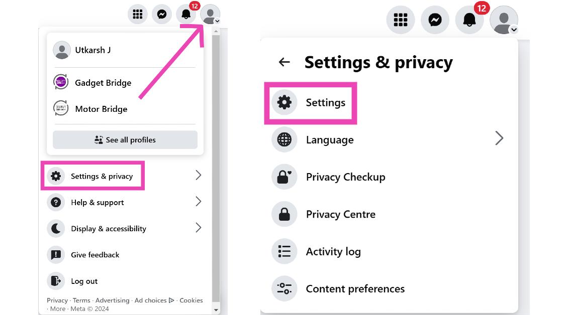 Βήμα 1:Μεταβείτε στο Facebook και κάντε κλικ στο δικό σαςεικόνα προφίλΣτην επάνω δεξιά γωνία της οθόνης.