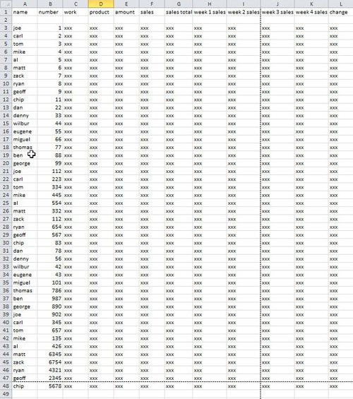 Ένα υπολογιστικό φύλλο που προσπαθείτε να χωρέσετε σε μια σελίδα πιθανότατα θα μοιάζει με την παρακάτω εικόνα. Κάτι που είναι λίγο πολύ μεγάλο για να χωρέσει σε ένα φύλλο χαρτιού, αλλά αυτό θα είναι ακόμα ευανάγνωστο αν μπορείτε να το μειώσετε λίγο.